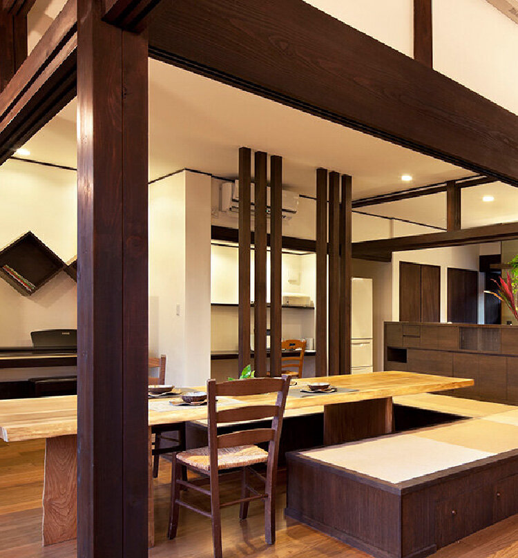 Nさま邸は、築70年以上の風格ある古民家。ご主人の大阪への転勤を機に全面的なリフォームを計画されました。 「古民家のよさはそのままに、新しい設備を取り入れて使いやすくしたい」とのご要望に、インテリアデザイナーの大池敦子さんとコラボレーションしてプランニング。