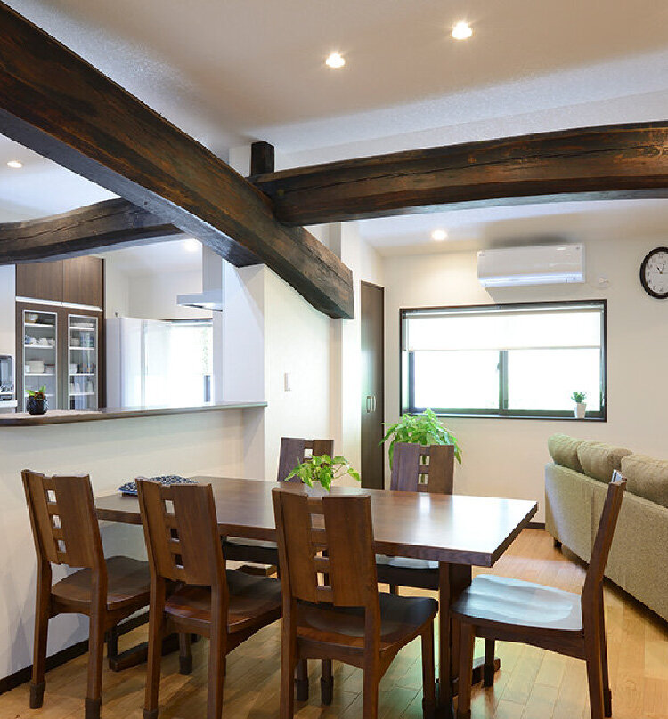これだけ立派な梁があるお宅は珍しいので、どのように梁を生かすか、現場での打ち合わせを重ねました。また、築100年以上の家ですので耐震補強に十分気を配りました。ご両親が快適にくらしておられると聞いて安心しました。