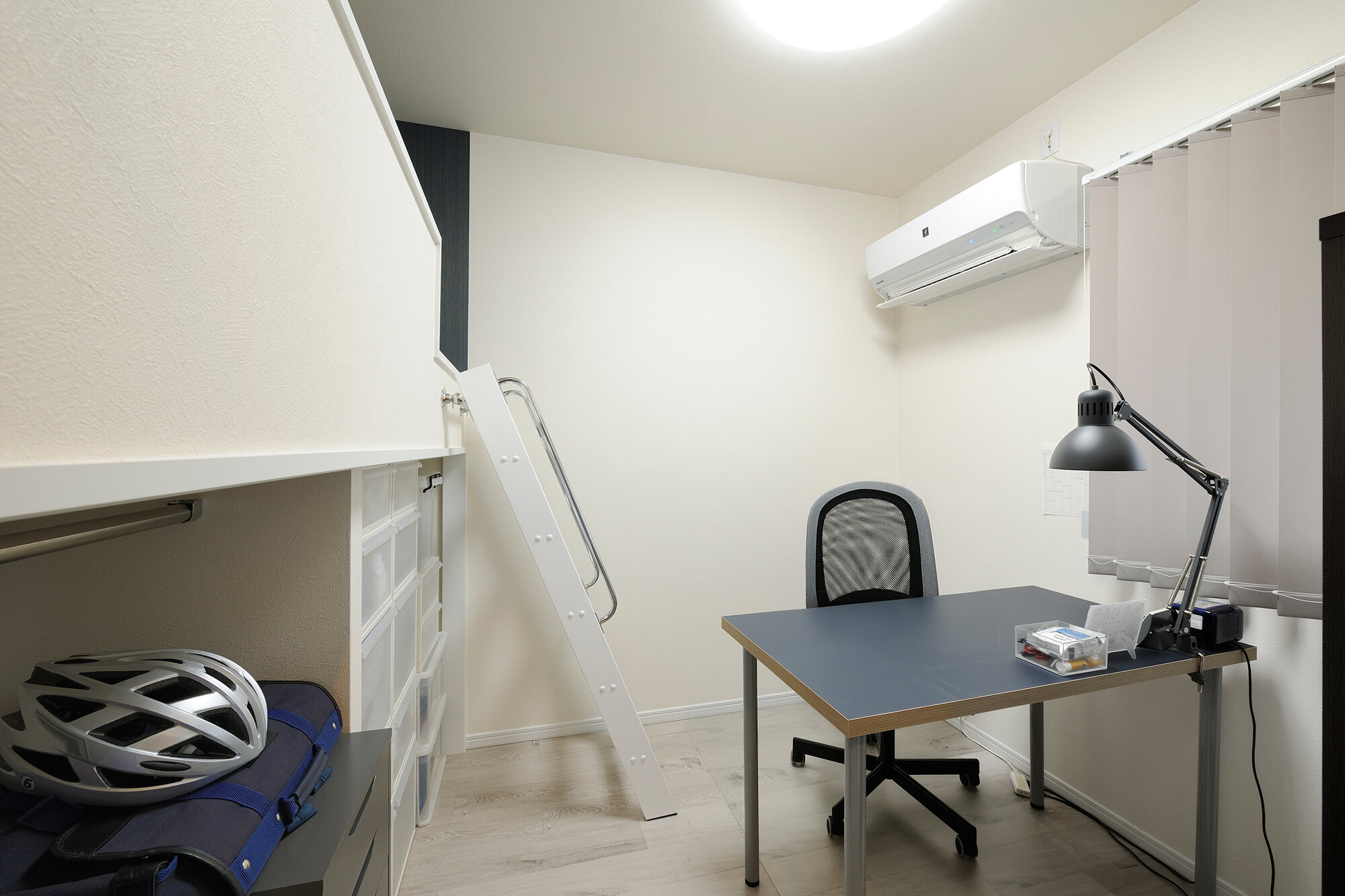 ご長男の部屋は変化に富んだ楽しい空間になりました。ロフトベッドを設置し、下段を収納にして空間を無駄なく活用しています。
