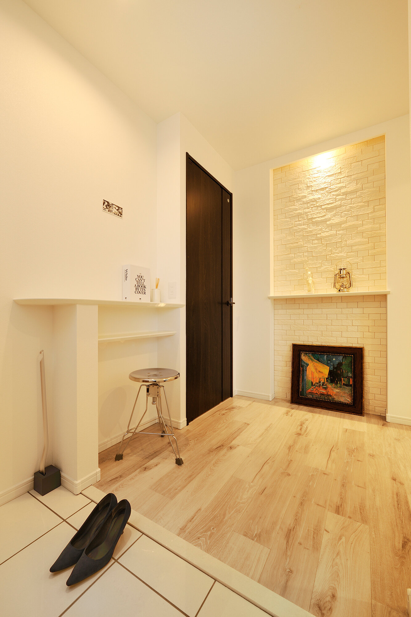 玄関ホールは洋室の一部を土間にし、スペースを広げモダンでおしゃれな空間に。