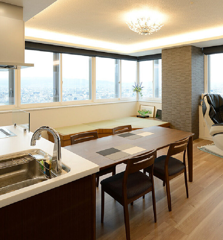 タワーマンションの高層階にあるNさま邸。まだ築10年でしたが、水まわりなどご主人が車椅子で使いづらいところが出てきました。老後を迎えるご夫妻が安心で快適に暮らせる住まいを目指して、リノベーションを実施されました。