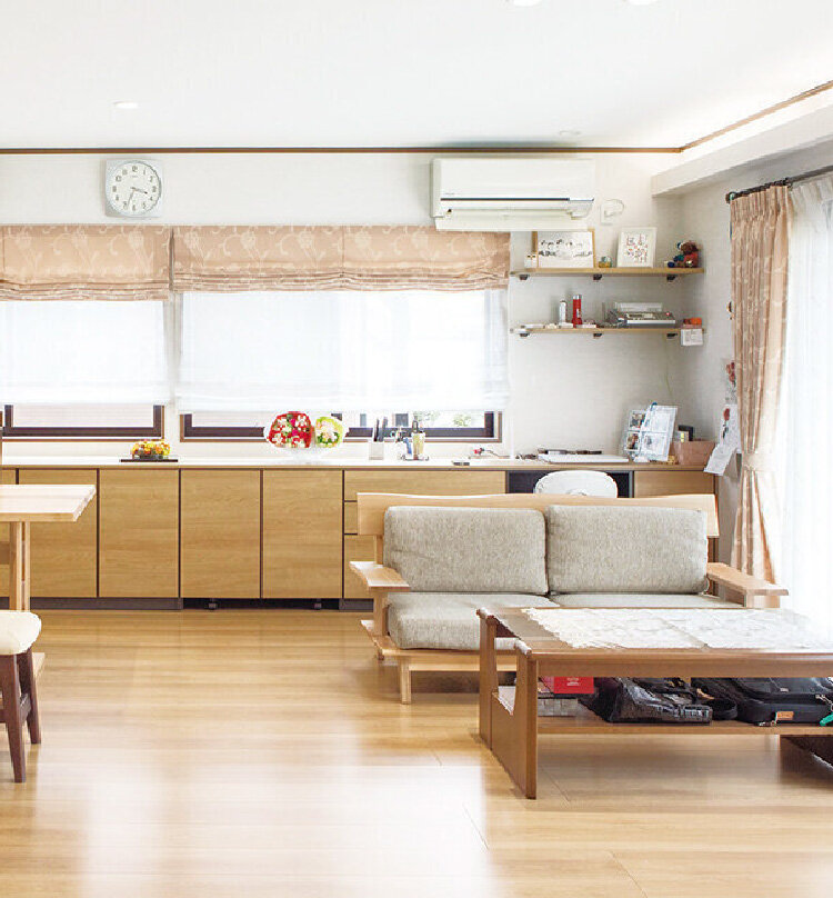 LDKはのびやかな大空間に。床暖房と大きな窓で、より暖かく明るくなりました。「年末年始に子どもたち家族や親戚も集まりましたが、ゆったりくつろげました」とご主人。