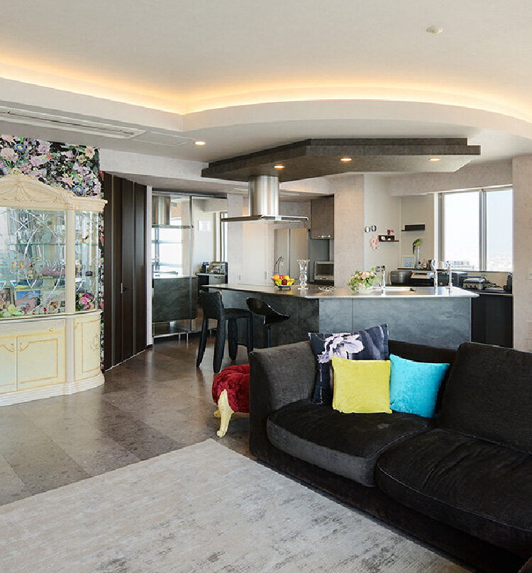 目指されたのは、家族の笑顔が集う場所。LDKの一部をご長男の部屋にしましたが、「狭くなったはずなのに、不思議と広く感じるLDKになりました」とご主人。V字型のアイランドキッチンを中心に、ご家族みんなが楽しく集います。内装や家具は、ご夫妻のセンスに合ったエレガントなイメージに。元の広い子ども室をご夫妻の寝室に変更。「シックでおしゃれになりました」と奥さま。お子さまたちの部屋も、それぞれ素敵な雰囲気に。ご主人が希望された2つめのトイレも水まわり近くに新設。玄関ホールは、思い出のある絵画を飾るためゴージャスな雰囲気に生まれ変わりました。「私たちの想いがカタチになりました」と満足そうなご夫妻でした。
