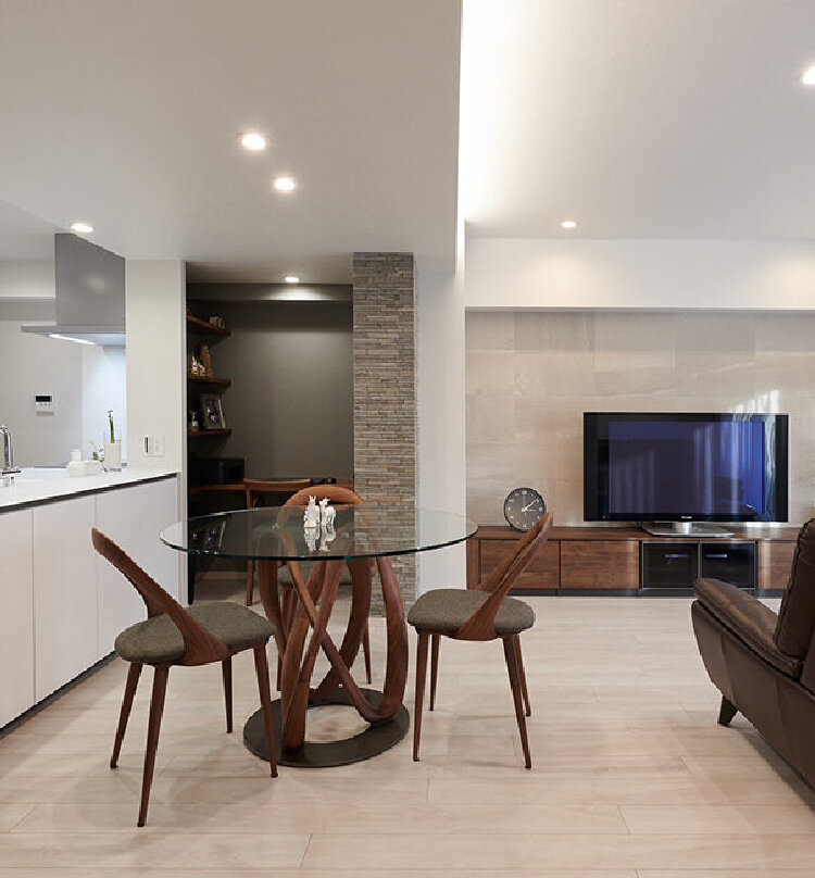 ご家族同士の「つながり」も考慮し、キッチンから見た空間の広がりや、ご長男の居室の位置も配慮しています。奥さまこだわりのインテリアが素敵な、居心地の良いおしゃれなお住まいになりました。ご家族でゆっくり過ごしていただければと思います。