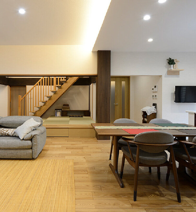 広々としたLDKから玄関のしつらえ、北側の坪庭、書斎など、ご主人のこだわりを随所に反映し、和モダンの雰囲気が素敵なお住まいに仕上がりました。