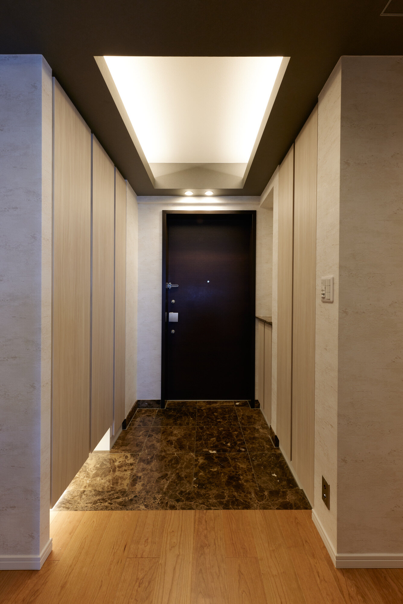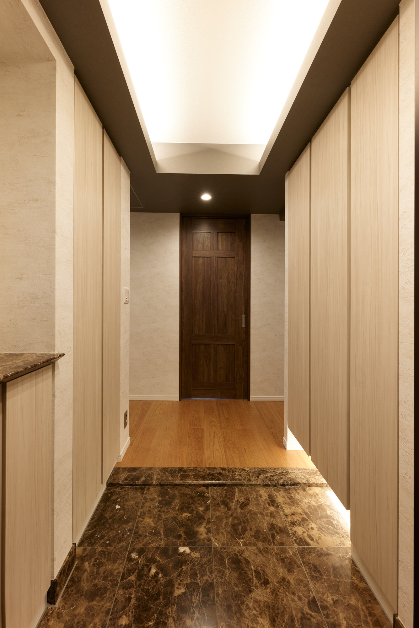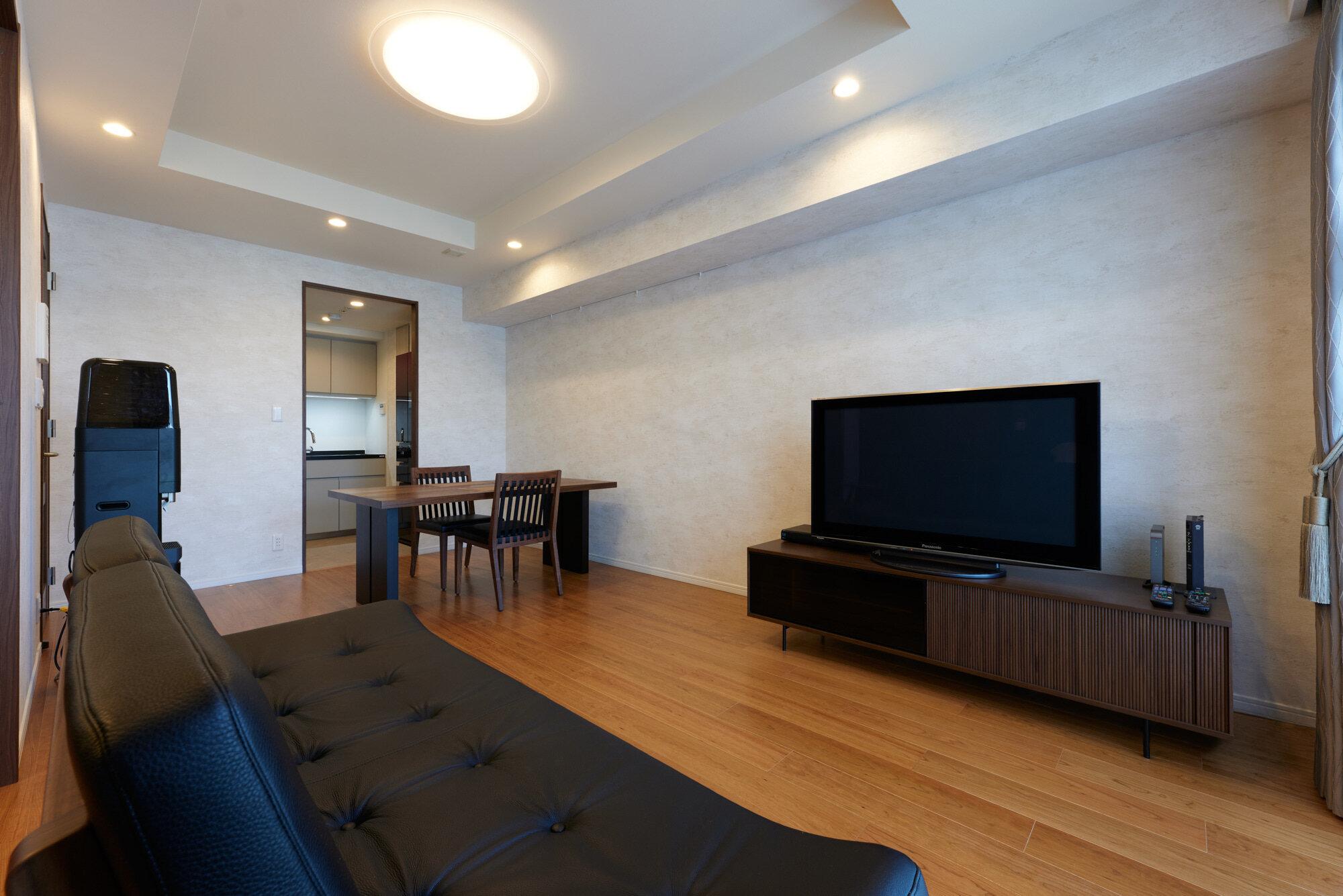 天井と壁のクロスを貼り替え、3カ所の収納は明るい木目の扉に。ダウンライトと建築化照明で、より上質な雰囲気になりました。