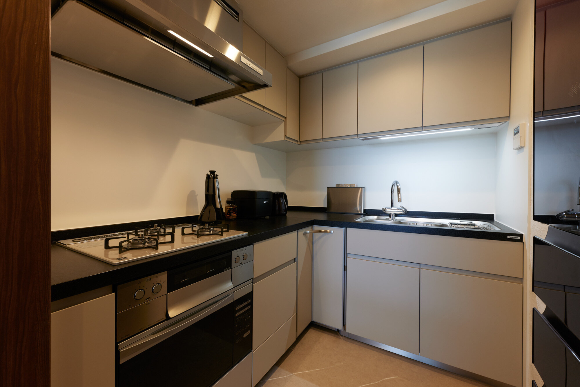 「Lクラス」キッチンで明るい印象に変わりました。高級感のあるグラリオカウンター、家事がラクになる設備に入れ替えています。