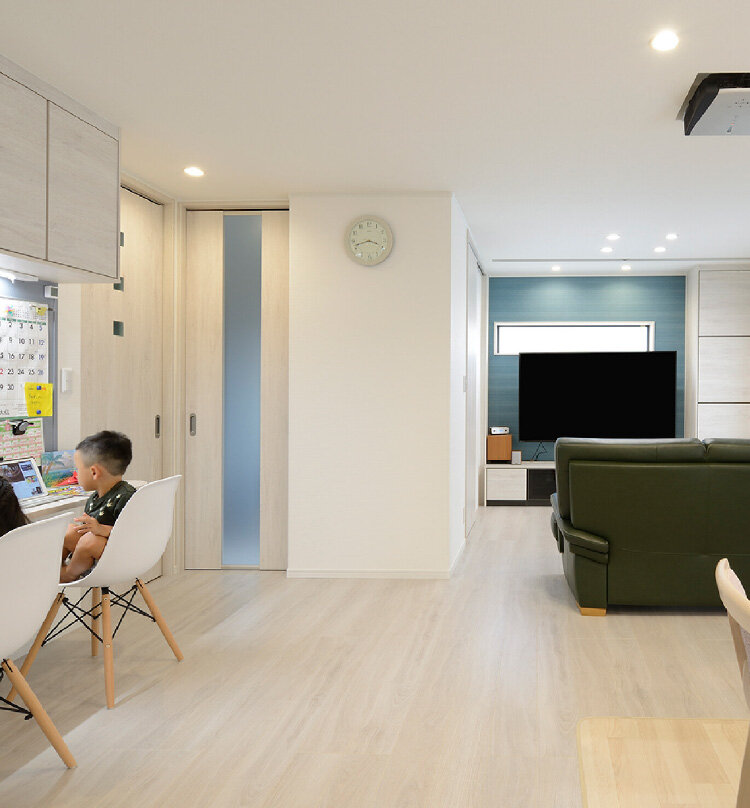 思い描いていたような全体的に白のイメージで、広く明るい雰囲気になりました。ワンフロアのゆったりした空間で、早く帰りたいと思える家になりました。子どもたちは広い家の中で走り回って楽しそうで、新しい家に友達を呼ぶことが増えました。