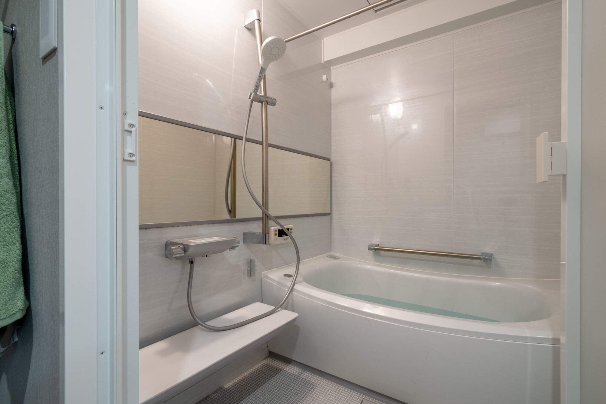 バスルームはサイズアップ。「膝をかかえて浴槽に入っていましたが、足を伸ばせるようになって快適です」。
