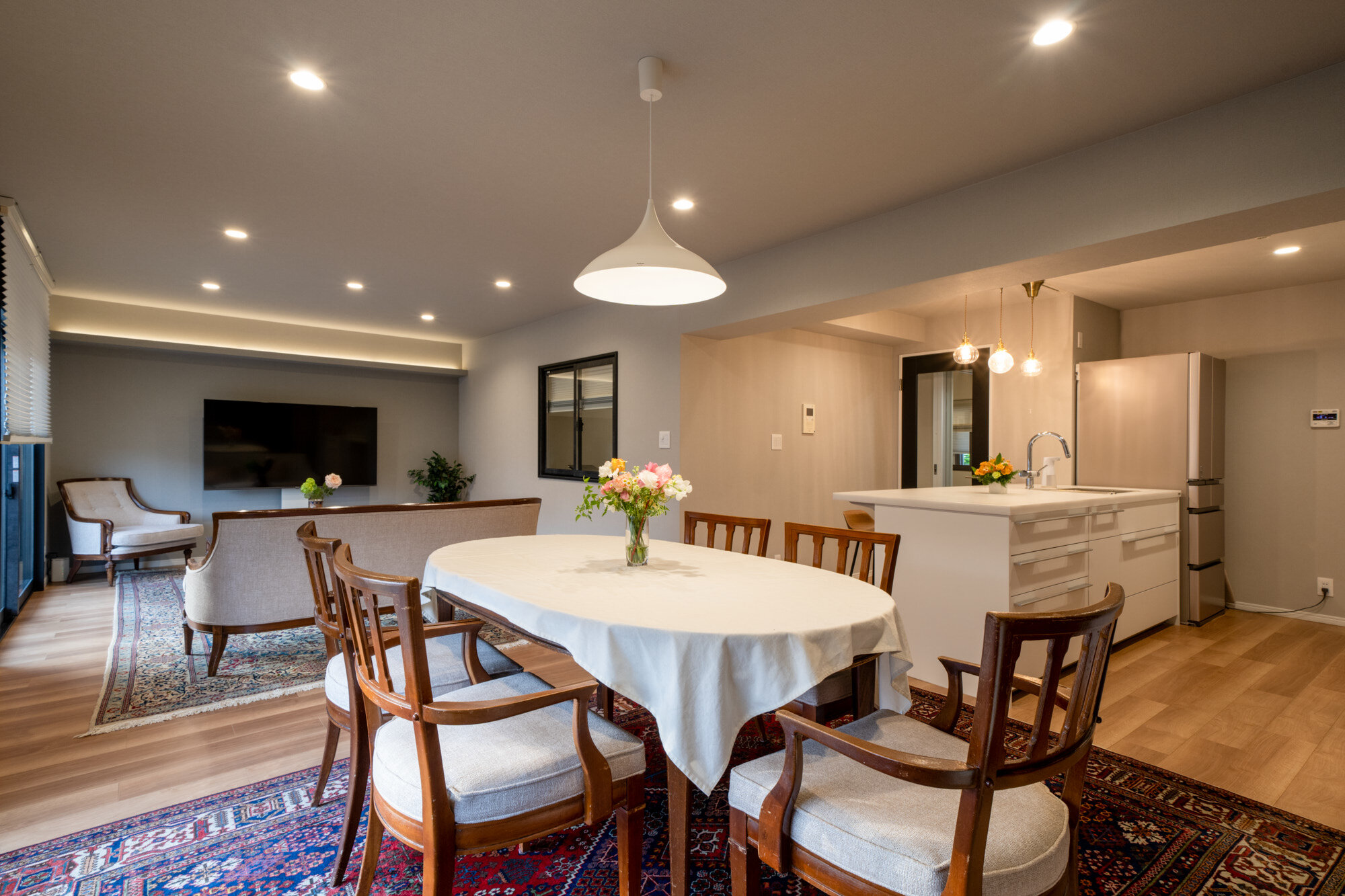 思い出のあるご実家が、ホームパーティーも楽しめるゆとりの空間になり「新築のようになった」と喜ばれています。