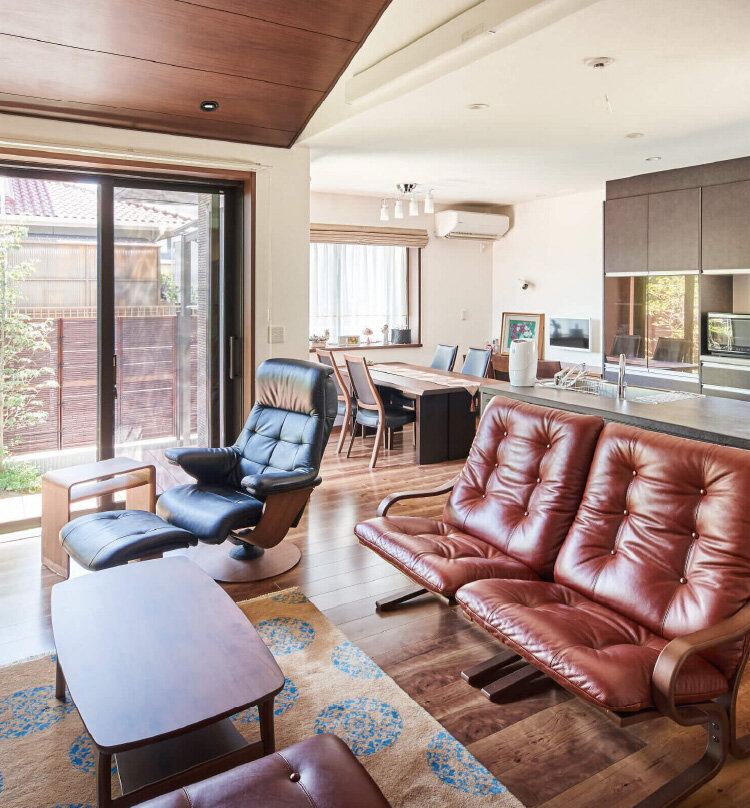 「階段のない平屋は、からだがラクでいいですね」と住み心地のよさを実感されているご主人。お客さまからも、「居心地がよくて落ち着く家ですね」と褒められることが多いとか。快適なわが家で身近な自然に心をなごませながら、それぞれの趣味や団らんの時間を楽しんでおられるTさまご夫妻です。