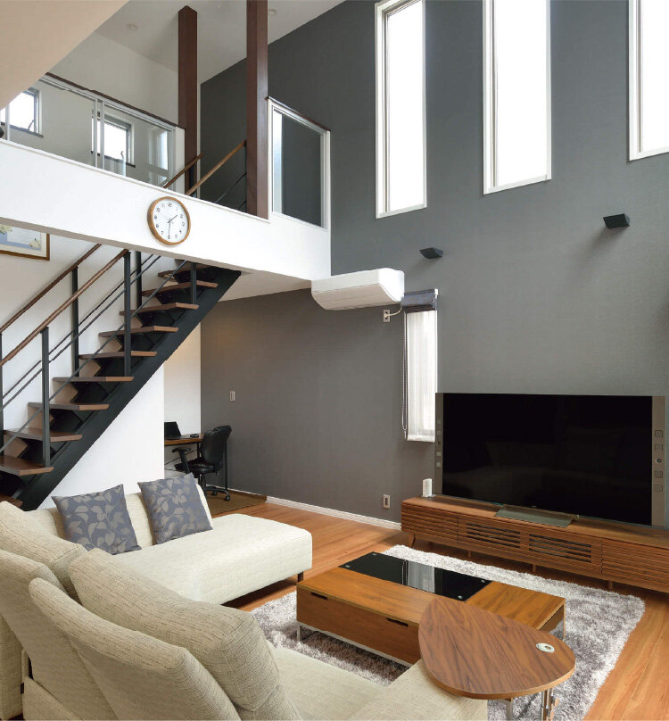 「リビングは天井が高いから、開放感があってくつろげます」と奥さま。遊びに来られた方からも、「この家はなんだか落ち着く」と好評だとか。