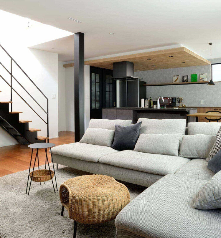 ご結婚後、都内への通勤が便利なエリアでご新居を計画されたHさま。「おしゃれな家にしたい」と希望され、ご夫妻の好みを詰め込んだ住まいが完成しました。 LDKは、落ち着いた木目のフロアやキッチンの下り天井など、木の感性を生かしたインテリア。アイアンのシースルー階段、グレーのキッチンや家具と調和したスタイリッシュな空間です。オープンなアイランドキッチンは、2人で並んで一緒に料理ができるゆとりの広さに。「使いやすくて、初めての料理にも挑戦するようになりました」と奥さま。