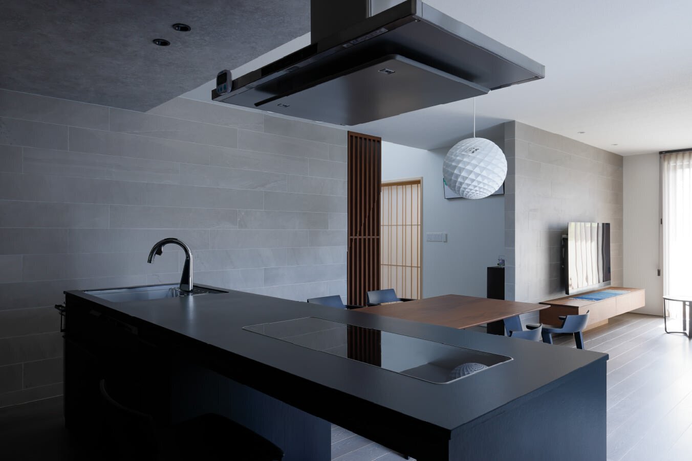 アイランドキッチンはリビングや和室、子ども室まで目が届き「おしゃべりしながら料理をしたり、子ども達が手伝ってくれたり、家族の時間が増えました」と奥さまにご満足いただけました。