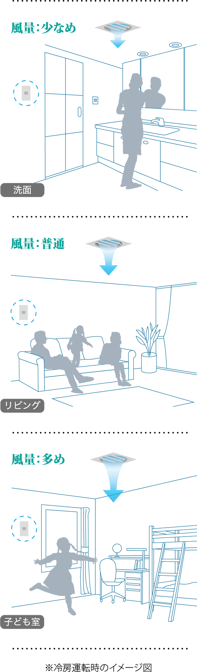 従来の個別エアコンによる空調と比べて、部屋間の温度差が少なく、快適に過ごすことができます。