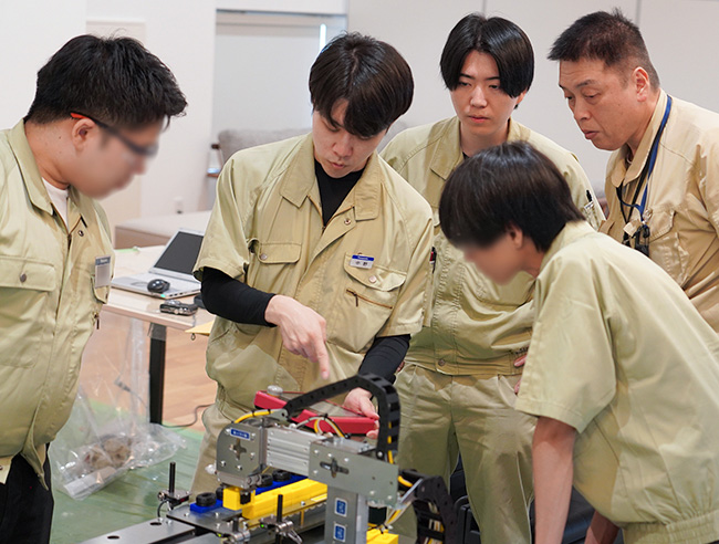「1日目終了後も、翌日のデモ機の改善案について話し合うほど、学生たちは熱心に取り組んでくれました。最後のプレゼンテーションもこちらの期待を超えた仕上がりで、単なる生産効率向上だけでなく、私たちが普段の業務で大切にしている安全面の配慮も考えられていました。彼らが、生産技術開発職の仕事の本質を理解してくれたことを感じてうれしく思うと同時に、自身のキャリア形成と当社がマッチするかを見極める良い機会になっていればと思います」(湖東製造部 技術課 リーダー 濱松憲司)