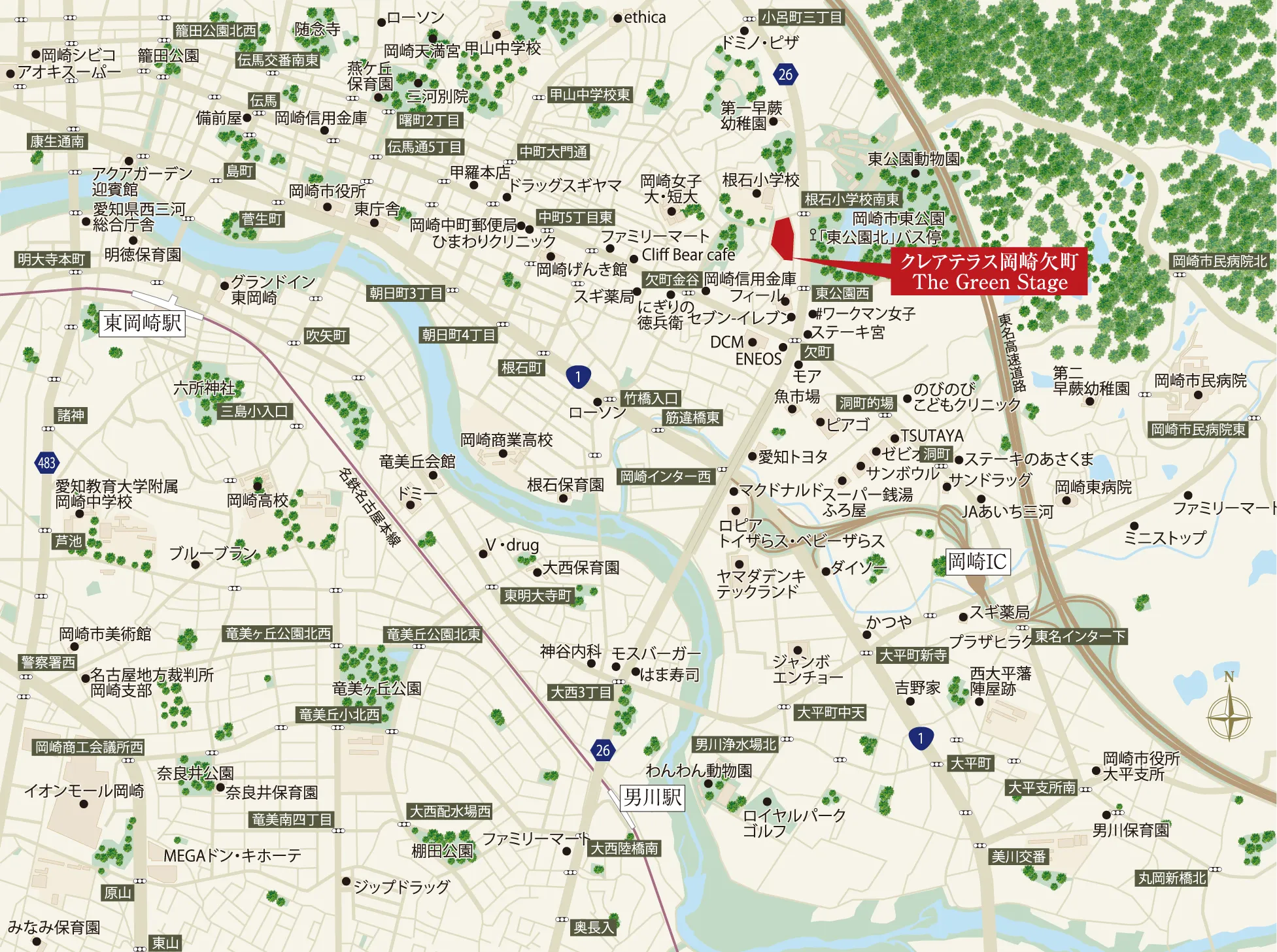 ※徒歩分数・距離は、最も近い区画からと最も遠い区画からのものを表記しています。徒歩分数は地図上の概則距離80m=1分として換算したものです。