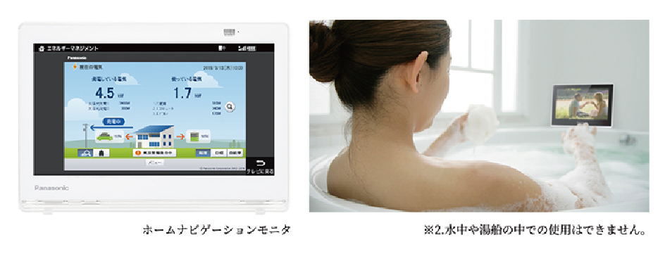 モニタは防水仕様のため、バスタイム中にドラマを楽しんだり、キッチンで料理番組を再生したりおうちのさまざまな場所で楽しめます。ブラウザ搭載なのでインターネットも閲覧できます。