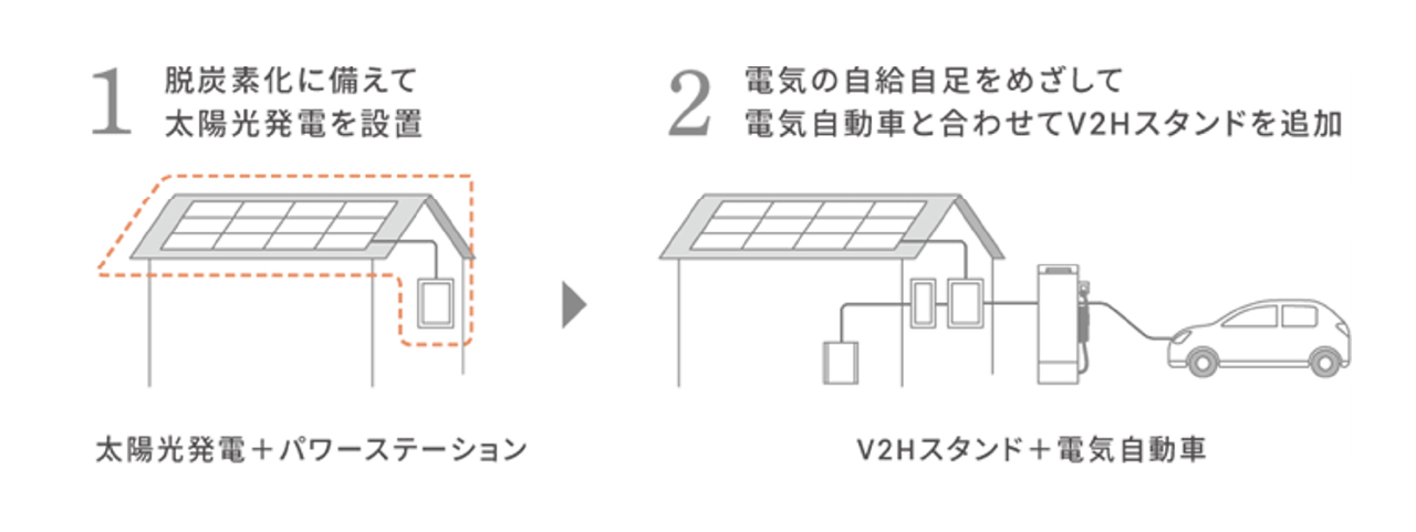 電気自動車のバッテリーを家庭用電力に使うV2H(Vehicle to Home)に対応し、脱炭素社会を見据えた自然エネルギーの有効活用をご提案します。ライフステージに合わせてアップデートが可能。将来を見据えた長期視点のご提案で、長く安心して暮らせる住まいをお届けします。