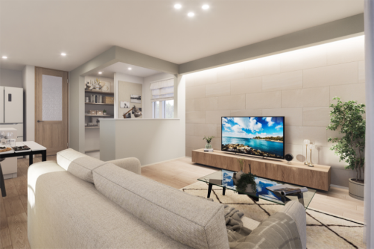 ※掲載の街並み完成予想図及び内観完成予想図は計画段階の図面を基に描き起こしたもので実際とは異なる場合があります。配管、素材および周辺の建物・電線・架線などは省略および簡略化しております。また、素材の色・質感など異なる場合があります。