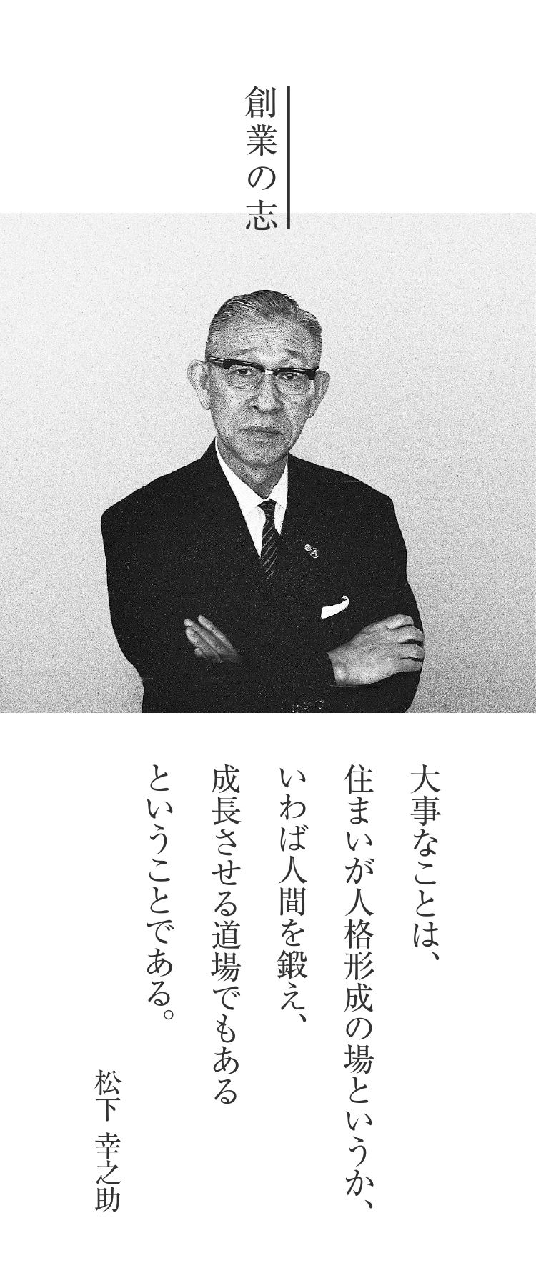 大事なことは、 住まいが人格形成の場というか、 いわば人間を鍛え、 成長させる道場でもある ということである。 松下 幸之助