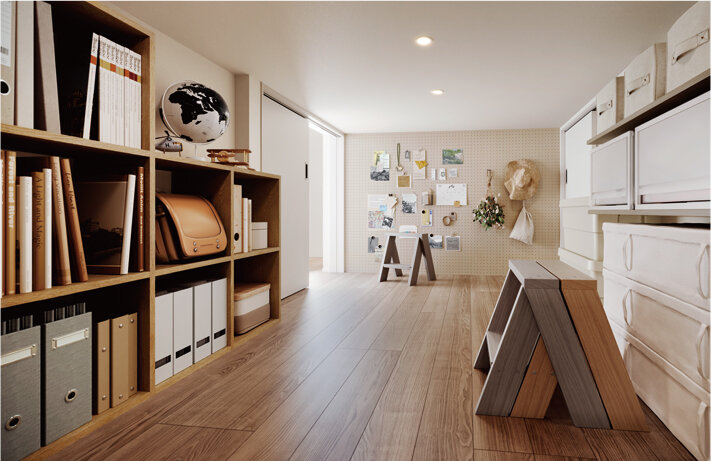 階段が必要ないので、その分のスペースを居住空間や収納に使えます。また、屋根裏を趣味空間や収納として使うなど、スペースを有効に活用できます。