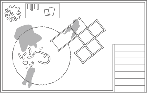 明日も続けて遊びたい玩具を出しっぱなしにできたり、ジャングルジムを置いてダイナミックに遊べる場所に。