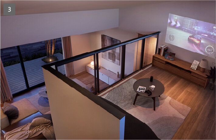 家族や友人たちと一緒に楽しくゲームで盛り上がったり、照明を落として非日常的なシアタールームに。