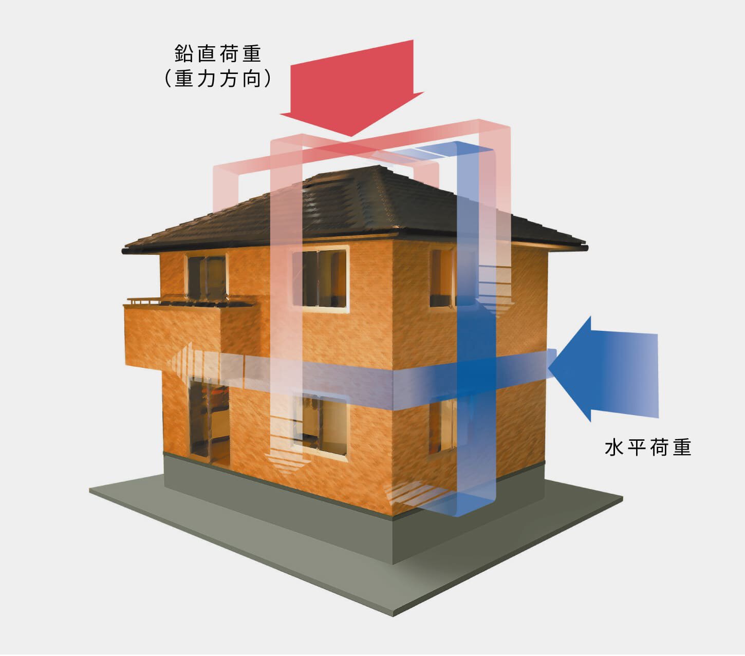 地震や台風など、急激に集中する外力を建物全体に分散して受け止めることができるので、