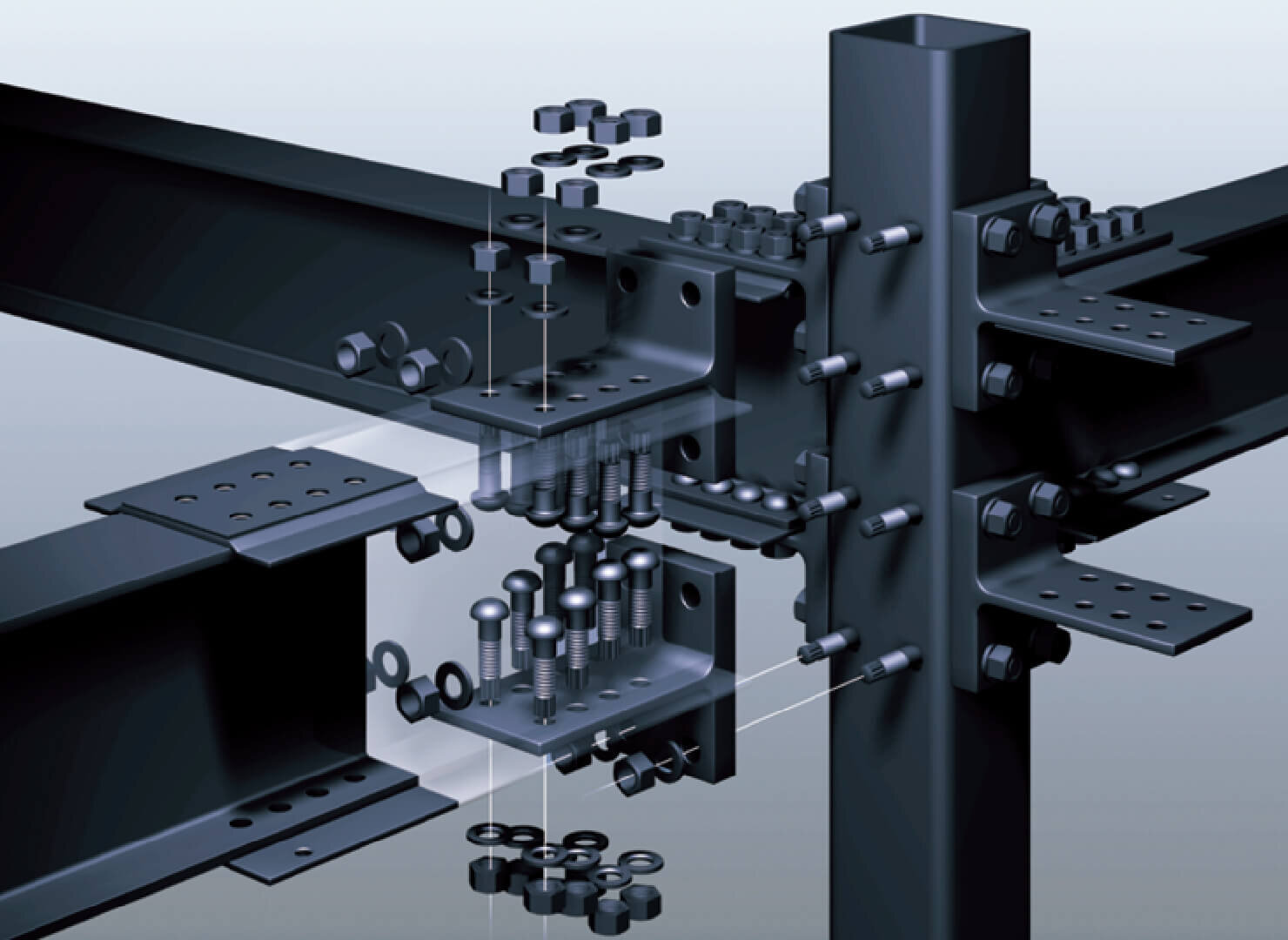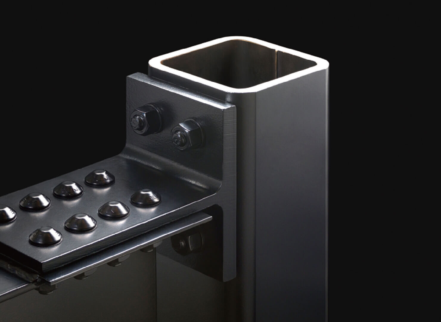重量鉄骨ラーメン構造は、高層ビルにも採用されている純ラーメン構造を、当社の技術力で進化させた重量鉄骨構造です。とくに接合部分は精度が安定しにくい現場溶接工事をなくしスプリットティーによる高力ボルト接合※を採用。耐震性に優れた精度と品質を実現しました。